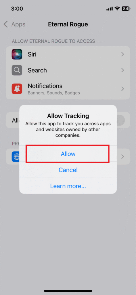[Step 1] Enabling Tracking for the “Eternal Rogue” App